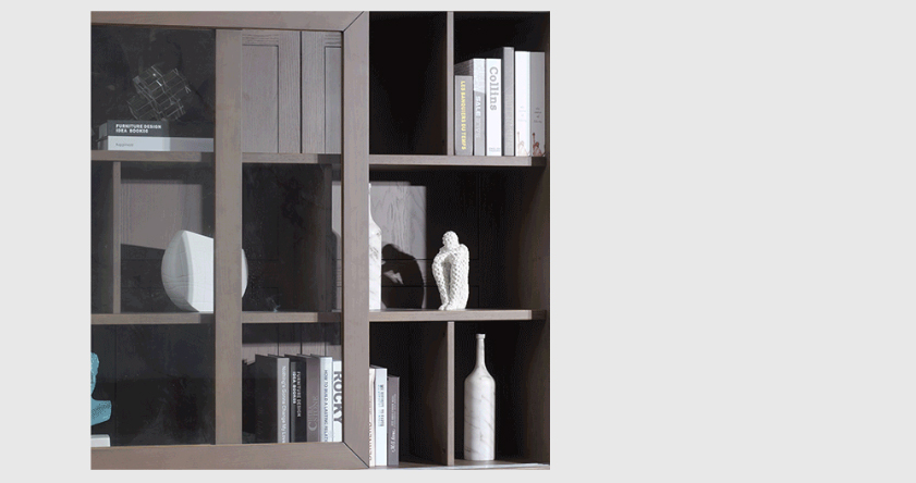 玻璃柜门,透明度高,方便取放书籍和展示小摆件