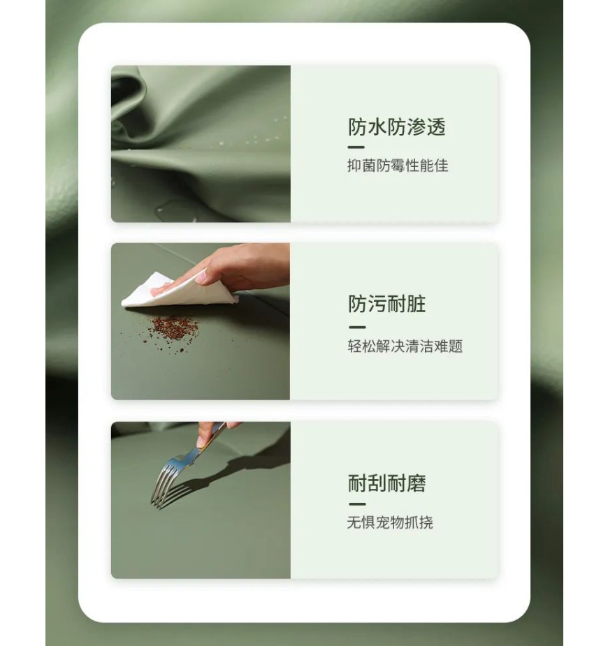 采用新型环保材料,表面富含有机硅成分,触感柔软且顺滑,无溶剂、无重金属,对皮肤友好,不含有害化学物质,是绿色家居的最新选择。