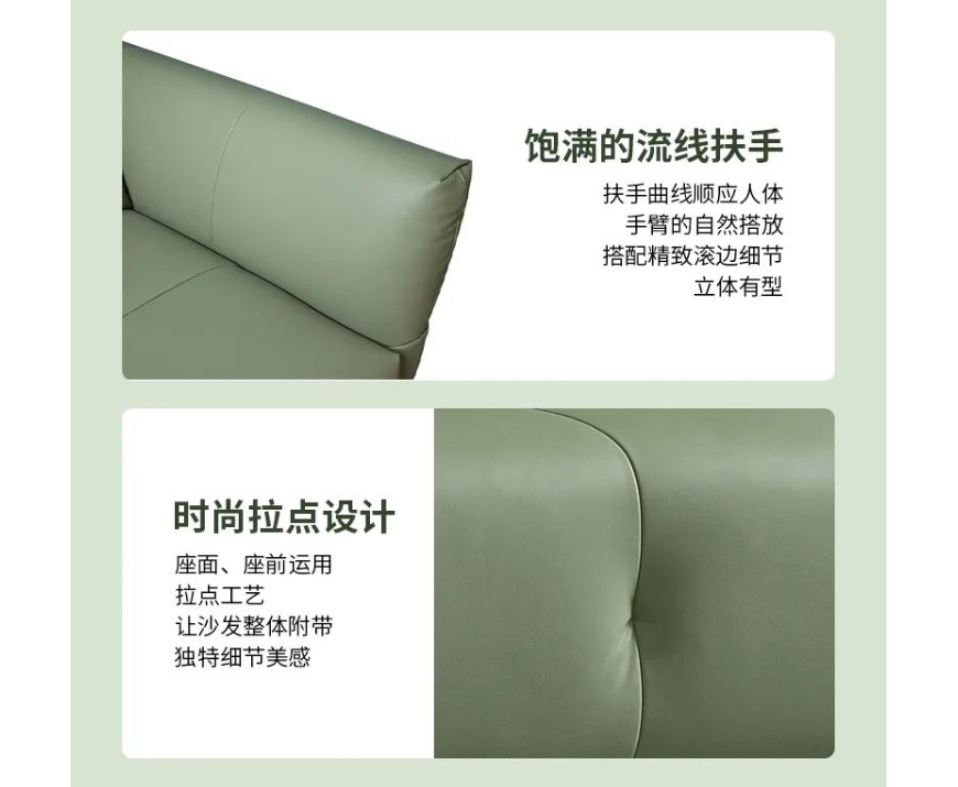 沙发整体线条自然流畅,座面时尚拉点设计,勾勒出沙发的流畅轮廓感,美观而富有设计感。