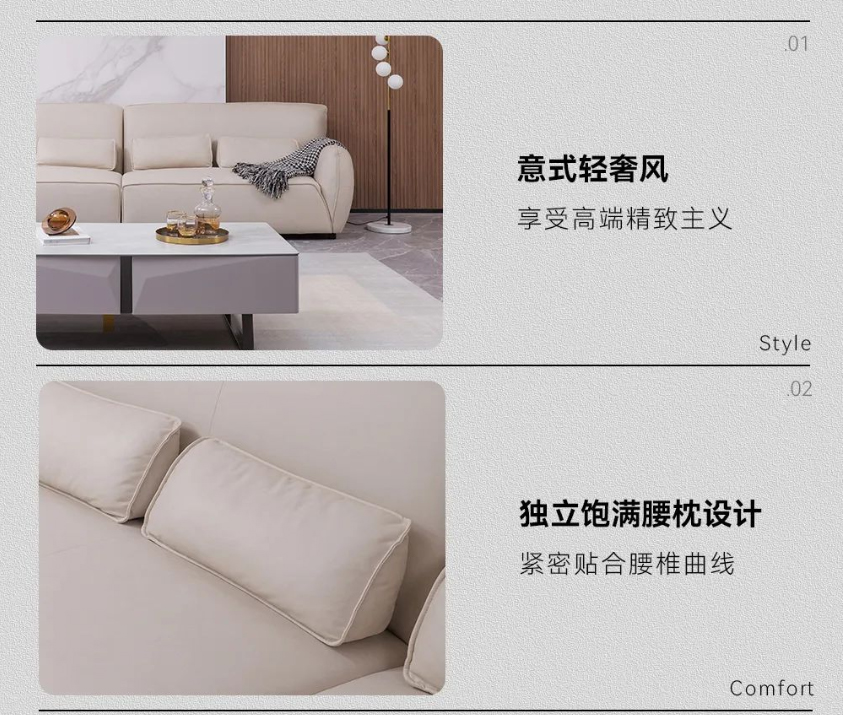 意式简约设计,米白色时尚耐看,享受深度释压的包裹感。
