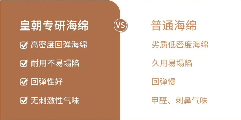 甄选皇朝专研品质海绵,密度高回弹好,不易塌陷