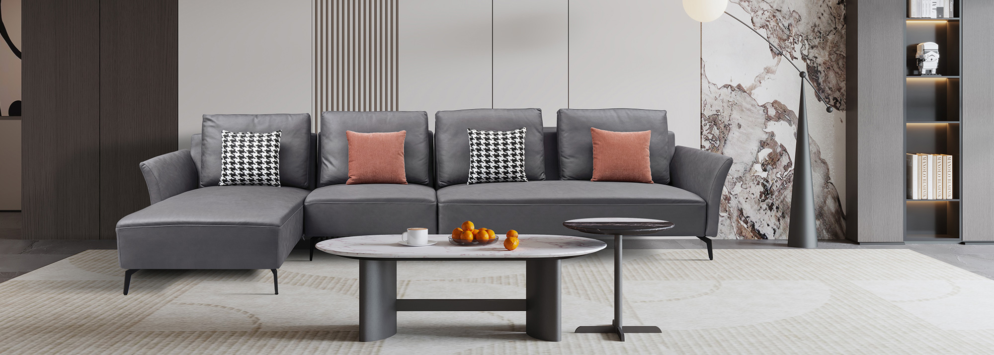2、追逐现代简奢生活热潮,研发涵盖卧室、客厅、书房、餐厅、入户五大套房空间家具产品,品类齐全满足客户多种需求;